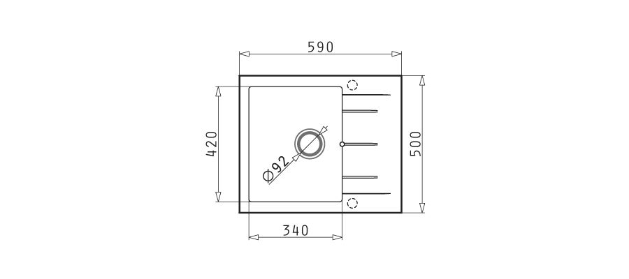 • Διαστάσεις νεροχύτη: 590 x 500mm