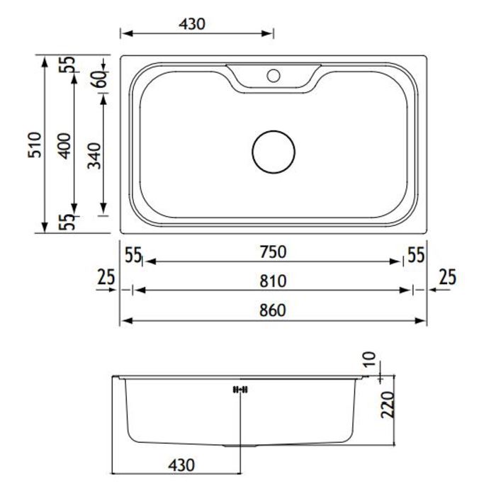 Νεροχύτης APELL CRITERIA 860 ΙΝΟΧ ΛΕΙΟΣ (86x51cm) 1 ΓΟΥΡΝΑ