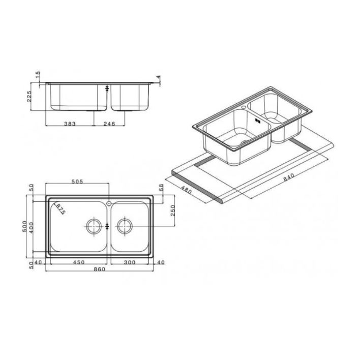 - Κοπή πάγκου: 84 x 48cm