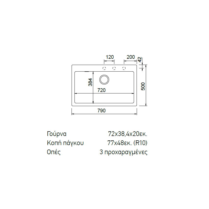 - Γούρνα Μεγάλη: 72 x 38,4 x 20cm