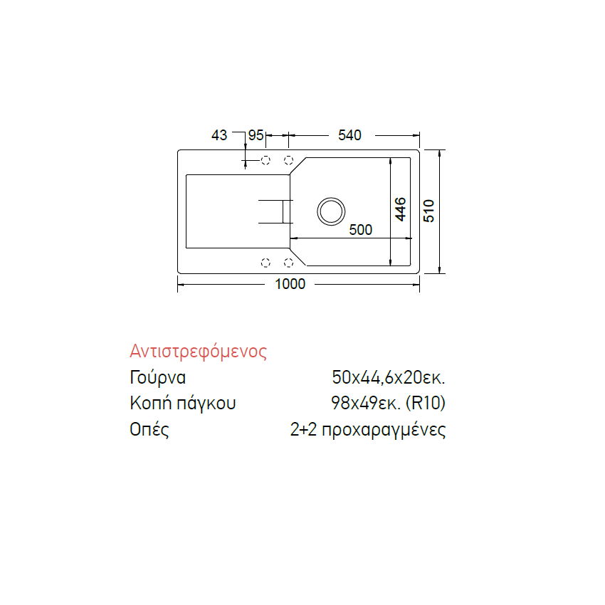 Γούρνα Μεγάλη: 50 x 44,6 x 20cm
