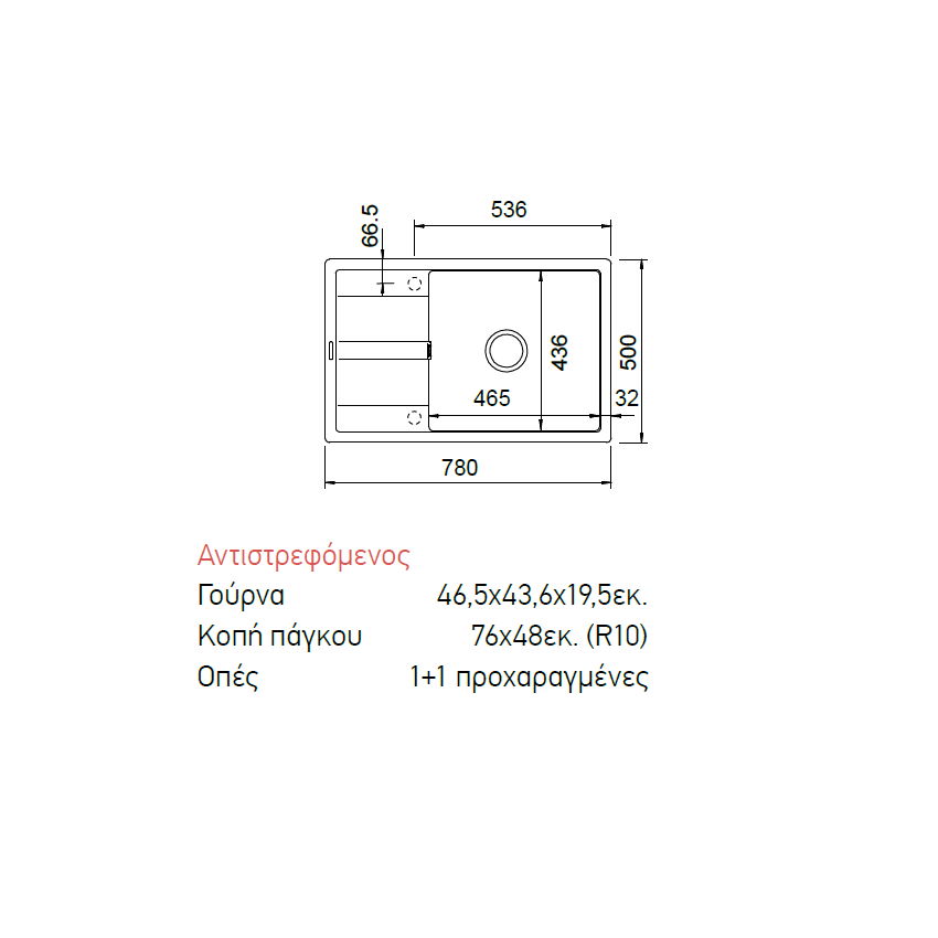 • Γούρνα Μεγάλη: 46,5 x 43 x 19,5cm