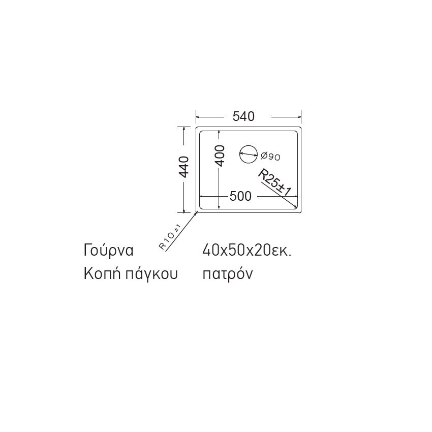 - Γούρνα: 40 x 50 x 20 cm