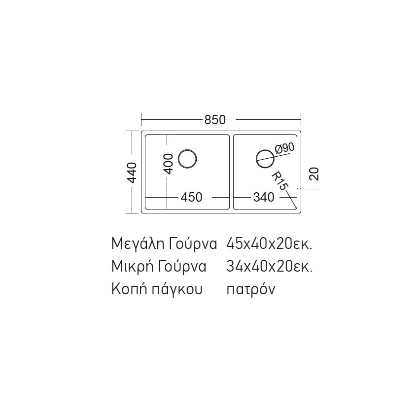 • Γούρνα: 45 x 40 x 20 cm