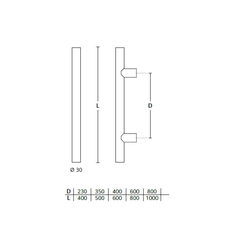 Διάσταση:400mm,500mm,600mm,800mm και1000mm (μήκος λαβής) / 230mm,350mm,400mm,600mm και800mm (κέντρα λαβής)