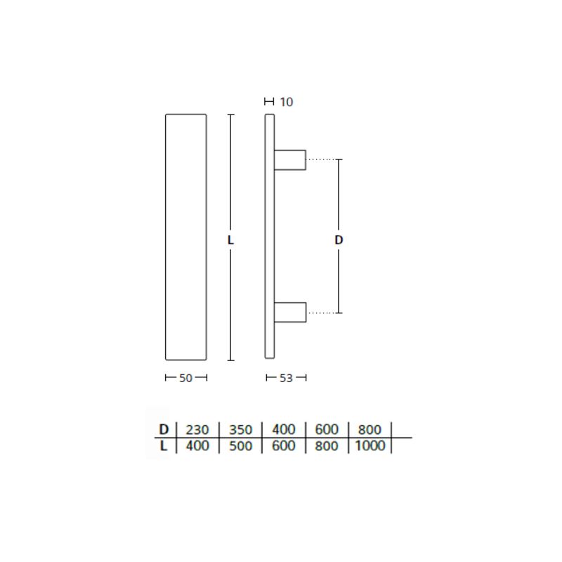 Διάσταση:400mm,500mm,600mm,800mm και1000mm (μήκος λαβής) / 230mm,350mm,400mm,600mm και800mm (κέντρα λαβής)
