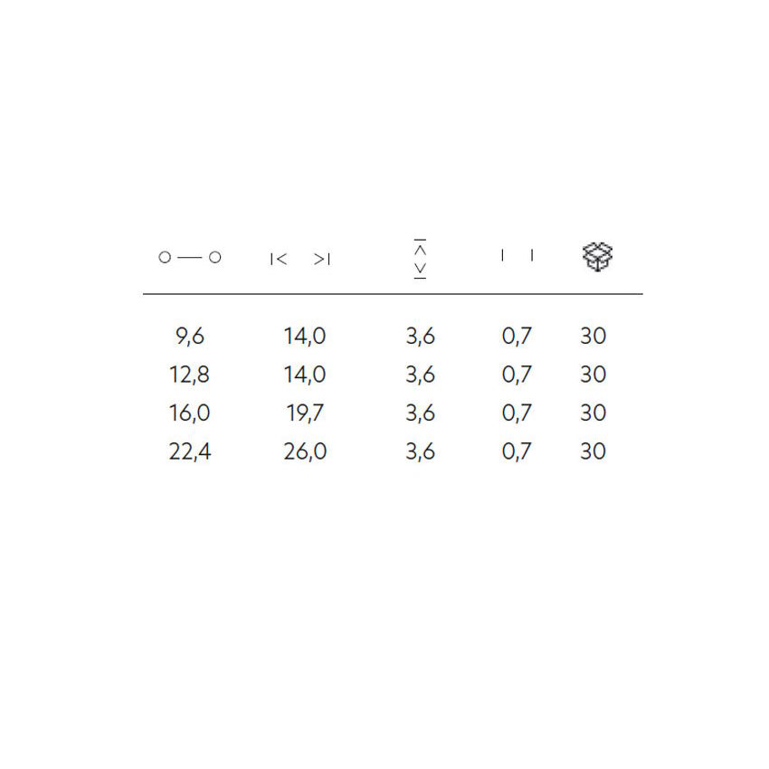 Διαστάσεις: 96mm, 128mm, 160mm, 224mm